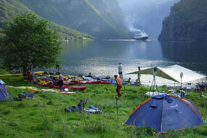 Vi er ferdig med padlingen for dagen og har slått opp leir i Nærøyfjorden